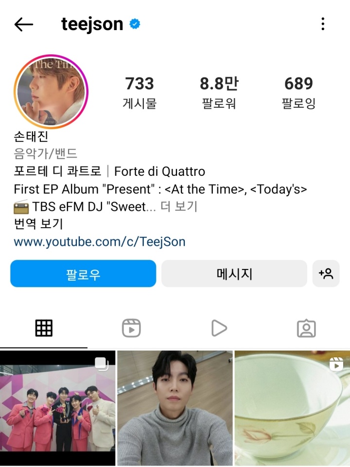 카테고리 없음 손태진 프로필 팬카페 노래모음 by 소프트팡 2023. 2. 21. ♥손태진 프로필♥ 생년월일 > 1988년 10월 20일 35세 키 > 186cm 몸무게 > 77kg 학력 > 서울대학교 성악과, 서울대학교 대학원 성악과 종교 > 개신교 소속그룹 > 포르테 디 콰트로(Forte di Quattro) MBTI > ESFP 가족 > 증조할아버지 심재덕, 증조할머니 장형복, 이모할아버지 김호경, 이모할머니 가수 심수봉, 반려견 우니(비숑프리제) >> 손태진 인스타그램 구경하기 >> 손태진 팬카페 구경하기 >> 미워도 다시 한 번 듣기 >> 백만송이 장미 듣기 >> 손태진 노래모음 공유하기 게시글 관리 소프트팡 저작자표시 비영리 변경금지 (새창열림) 댓글