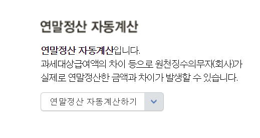 연말정산을 복잡하고 어렵게 생각하시는 분들을 위해 국세청에서는 자동계산 시스템을 제공하고 있습니다. 빠르고 간편해서 많은 분들이 이용하고 계십니다.